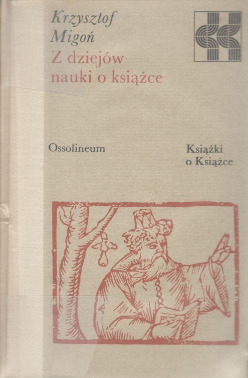 Z dziejów nauki o książce / Krzysztof Migoń. - Wrocław : Zakład Narodowy im. Ossolińskich, 1980. - 240, [1] strona : ilustracje ; 20 cm.
