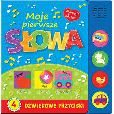 Moje pierwsze słowa : 4 dźwiękowe przyciski. - Warszawa : Wilga, [2019]. - [8] stron : ilustracje kolorowe ; 23 cm.