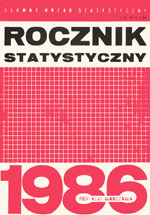 Rocznik statystyczny 1986 / Wiesław Sadowski ; Główny Urząd Statystyczny. - Warszawa : Główny Urząd Statystyczny, 1986. - LXXII, 630 stron, [24] stron tablic, [2] karty złożone : ilustracje, mapy, wykresy, tabelki+err. ; 24 cm.
