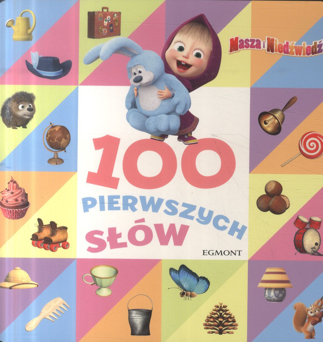 Masza i Niedźwiedź : 100 pierwszych słów. - Warszawa : Egmont Polska, 2019. - [18] stron ; ilustracje kolorowe; 18 cm