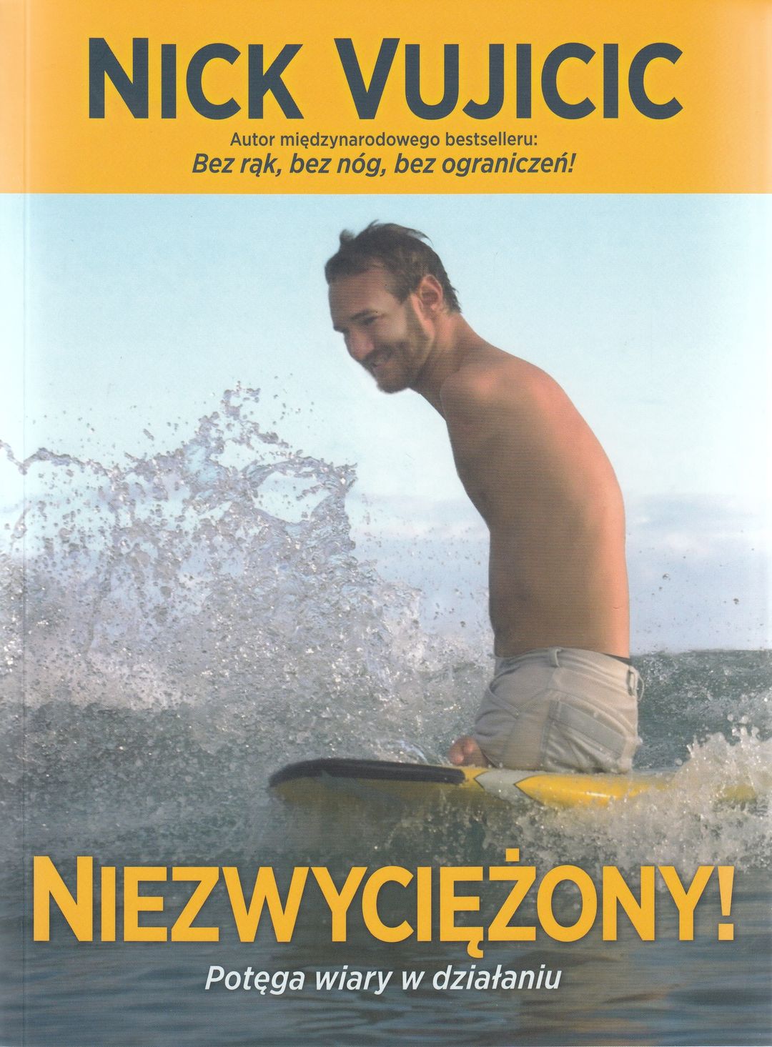 Miliony ludzi na całym świecie rozpoznają uśmiechniętą twarz Nicka Vujicica. Nick urodził się bez rąk i nóg, jednak przezwyciężył ograniczenia wynikające z niepełnosprawności i prowadzi dziś życie, które sam określa jako „obłędnie szczęśliwe”. Jest jednym z najsłynniejszych współczesnych mówców motywacyjnych. Angażuje się w działalność charytatywną, a równolegle kieruje firmą szkoleniową, nagrywa programy radiowe, pisze bestsellerowe książki i występuje w filmach - by wymienić tylko niektóre z jego licznych aktywności. Swój sukces życiowy Nick przypisuje postawie streszczającej się w dewizie „wiara w działaniu”. W książce „Niezwyciężony!” Nick podpowiada, jak konsekwentnie stosować wiarę w działaniu w różnych dziedzinach życia - jak przekuć wiarę w czyn w konfrontacji z problemami i wyzwaniami takimi jak: kryzysy osobiste, trudności w relacjach z innymi ludźmi, wyzwania związane z pracą i karierą, problemy zdrowotne i utrudnienia wynikające z niepełnosprawności, autodestrukcyjne myśli, emocje i uzależnienia, nietolerancja, dyskryminacja, znęcanie się i przemoc, zaburzona równowaga ciała, umysłu, serca i ducha.