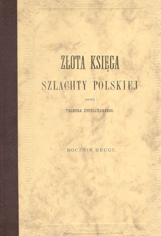 Złota księga szlachty polskiej. Rocznik IV. / Teodor Żychliński. - Poznań : Heroldium, 1994. - [4], 452, [2] strony, [8] kart tablic złożonych : portrety ; 28 cm.
